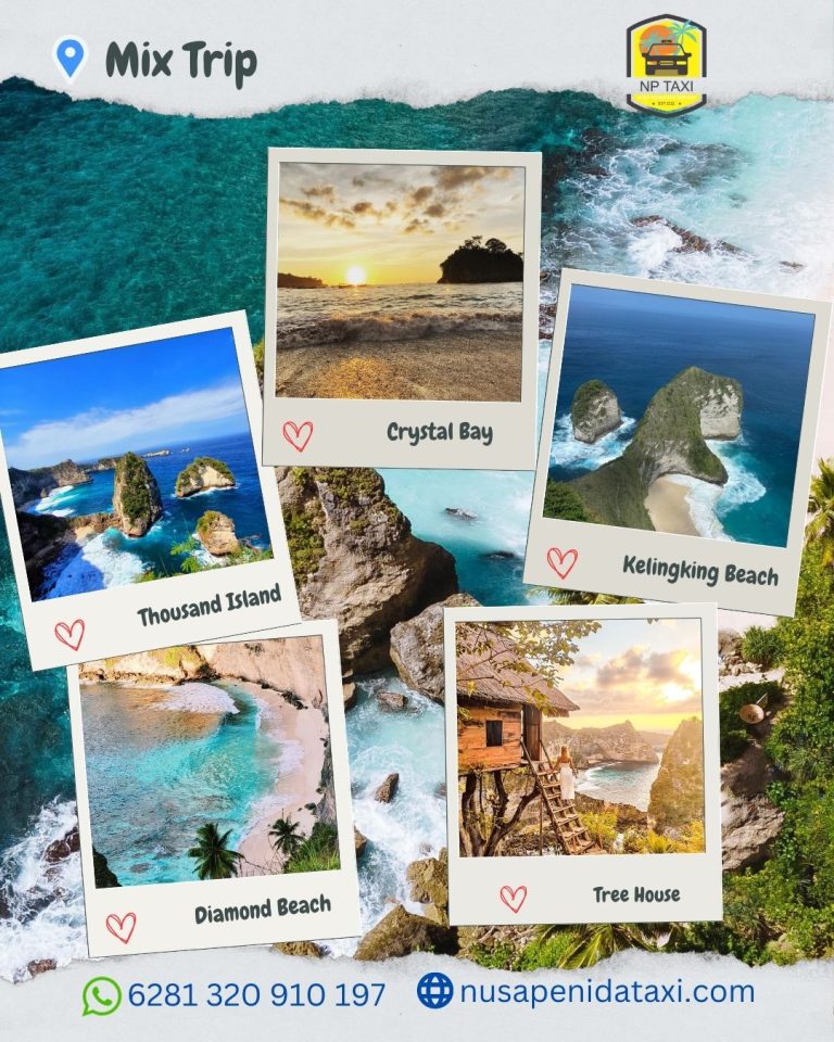 Mix 2 : Diamond Beach, Atuh Beach, Tree House, Thousand Island, Kelingking Beach, Crystal Bay